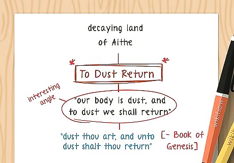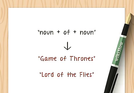 Identify your major characters. Many titles come from your main characters, or the most important character to your overall story. Certain characters are known as the Title Character, in that the character’s name is in the title. The play “Hamlet” simply uses Hamlet’s name as the title, and the reader knows upfront that this story is about that character. “The Great Gatsby” does the same. John Green's “Looking for Alaska” not only provides a sense of mystery concerning the subject of the book, as Alaska could be a place or the name of a person, but it ultimately tells us that the character, Alaska, is the driving force of much of the story’s action. You may choose not to use the name of a character in your title, but being to identify who your important characters are, and why each one is important to your story will give you options. The novel “Jonathan Strange and Mr. Norrell” is a story that involves many important characters, yet the title shows readers who the leading forces are. It intrigues readers right away by not only the uniqueness of the names, but draws up a curiosity on what the relationship between these two is, and why both are important enough to be given the title.