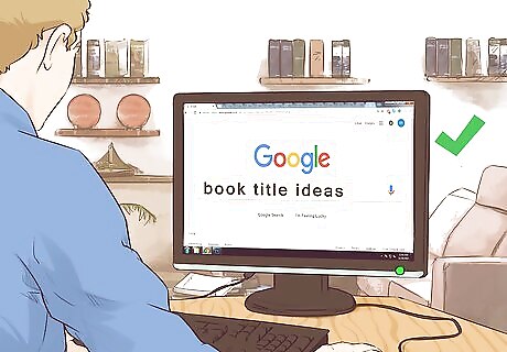 Search for your title ideas online. Search online for titles that may be floating around in your head. Not only will you find out if a particular title already exists, but you may find further inspiration. You don’t want to name your book something that already exists, especially if it’s a best selling book. This will make it harder for people to find your work if you publish your book. Searching for phrases online can also point you in a new direction that you may not have thought of before. You might find that instead of using the word “tale” in your title, the word “adventure” or “fable” sounds better for what you’ve written.