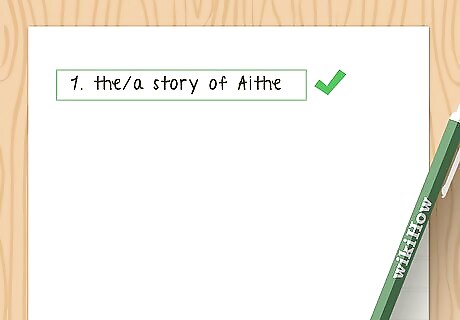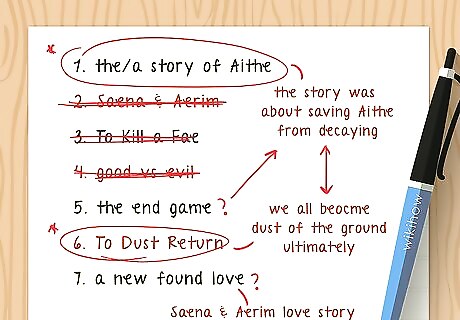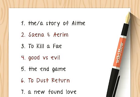 Start with a working title. Some writers start with a title before a single word of the story has been written. The title informs the story and inspires how it will unfold. Other writers write the whole story and then go back and add a title based on what has been written. In either case, the title will usually go through some changes during the entire process. Start with a working title that serves as a placeholder if you’re still writing your book. The working title can help to keep your story on track in terms of plot development, character choices, and overall genre. You might find that your working title ends up staying unchanged. But as the story continues you may also find that your working title no longer applies. In either case, your working title will help you to craft a final one as you learn more about your book.