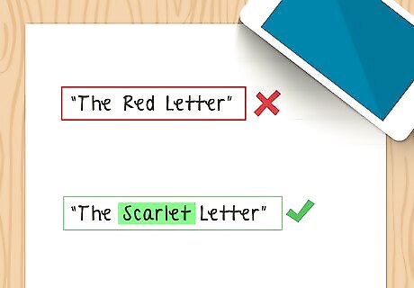 Use nouns and verbs. Specific nouns and actionable verbs which are more specific. Both will make your title sharper and more creative. Look at your favorite titles from your list and pick a few that really stand out to you. Now see where you can get more specific. Toy around with replacing generic nouns like “boy” “girl” “town”, etc. with specific ones. What is the name of the boy, girl, or town? Can you replace a word with a more specific one that provides further details? Take for example “The Scarlet Letter”. The use of “scarlet” is much more interesting than simply “red”. “The Red Letter” sounds fine, but by getting more specific with what shade of red, you add a finer point of detail that makes your title stand out.