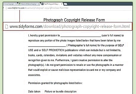 Use a copyright template if desired. One way to make the process simpler is to use a template to create your release. Basically, you'll just fill in the blanks with your information, and sign it. Then, you pass it on to the person you are granting a release to. However, it's always a good idea to have a lawyer look it over before sending it out.