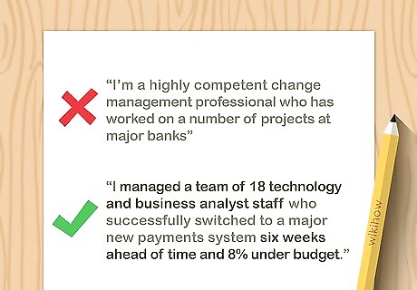 Refrain from using empty and generic phrases in your letter. Although you may want to say you’re “motivated,” “determined,” or “trustworthy,” these words appear in so many cover letters that the reader won’t see yours as unique if you use them. Instead, use creative and specific language that highlights the concrete skills and experiences you bring to the table. Use active phrases that focus on results and outcomes. Make it clear that you have gotten things done in the past and will continue to do so in this new position. For instance, consider the differing impact of the following 2 statements: “I’m a highly competent change management professional who has worked on a number of projects at major banks,” versus “I managed a team of 18 technology and business analyst staff who successfully switched to a major new payments system six weeks ahead of time and 8% under budget.” The more specific you can be in a limited number of words, the better.