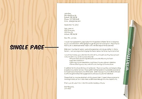 Keep your cover letter to a single page, unless stated otherwise. Some studies indicate that the average cover letter is looked over for only about 15 seconds. Therefore, you need to make an immediate, positive impression with both the look and content of your letter to stand a chance of avoiding the reject pile. Keeping your cover letter to a single page gives the reader the best opportunity to scan it quickly and get the most important information fast. Some job postings may list word or page limits for cover letters. You can also ask the contact person if there are any. A cover letter is your opportunity to “personalize” your resume. They should complement each other to present a quick yet thorough portrait of you as a strong job candidate. Thus, place the most important information about you near the top of the letter, just as you would with a resume.