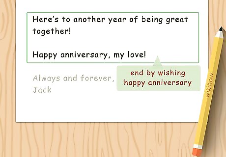 End by wishing your partner a happy anniversary. You can also include a short sign off like, “I love you and always will,” or “All my love on this special day.”