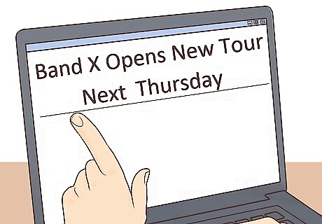 Write a strong headline. Your headline is the most important part of your press release; it will help the reader decide whether to spend the time reading the rest of the release. A strong headline may be, “Band X Opens New Tour Next Thursday,” or “Band X Covers Hair Metal Classics on New Album.”