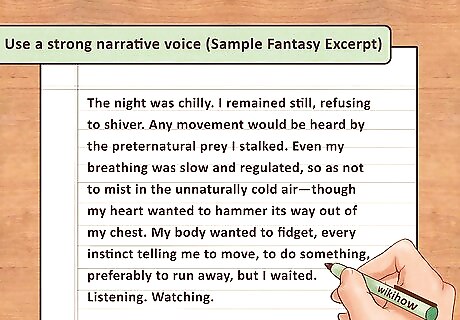 Use a strong narrative voice. A strong novel will have a strong narrative voice. The narrative voice of your novel could be the first person narrator who is also the main character in your story. Or you may use a third person narrator who comments on the action of the story. Having a strong, distinct narrative voice in your novel will make it stand out to publishers and be more attractive to potential readers. For example, your mystery novel could be narrated by the person who has been murdered at the start of the novel. Your narrator may then watch the action from above as a ghost and follow around the main character, a detective trying to solve the case. This is a unique approach to narrative voice that could help your novel stand out from other mystery stories.