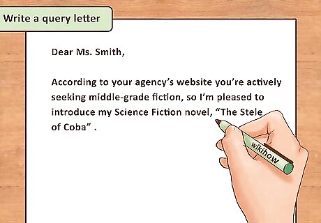 Write a query letter. A query letter will be your first contact with potential agents and publishers. The letter will be a one-page summary of why your novel is worth reading and publishing. It should be concise, professional, and grab the reader’s attention. You should try to create a query letter that will really sell your novel, as this will increase its chances of getting published. Your query letter should include the title of your novel, the genre, the word count and a short summary of the novel. You can also include a short biography and mention any published work you have done in the past.