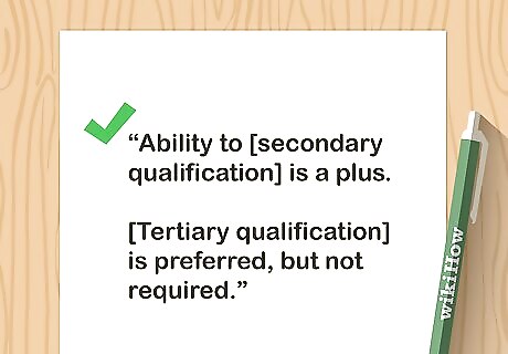 List those qualifications that are useful but not required as “Preferred.” These should be qualifications or skills you would like applicants to have, but aren’t technically required for doing the job. Remember that a person's work ethic and personality can be as integral to their success as their skills and qualifications. For example, if proficiency in a certain software program is a required qualification for your job, a preferred qualification might be prior work experience that involved using that software.