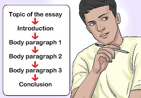 Make a brief outline. Create a short outline for the essay so you are organized during the writing process and more efficient with your time. Start by writing the topic on the top of the page. Then, make a space that says “Introduction.” Underneath that, quickly note how many paragraphs you plan to have in the body of the essay. Finish with a space that says “Conclusion.” The standard rule is to have one introductory paragraph, 3-6 body paragraphs, or 3-6 supporting points for your thesis statement, and one conclusion paragraph. For a 5-paragraph essay, it’s 1 introduction, 3 body paragraphs, and 1 conclusion paragraph. However, many teachers will accept essays that are longer than five paragraphs and will allow you to have many body paragraphs in your essay. Speak to your instructor about their expectations on the structure of the essay so you can follow their guidelines.