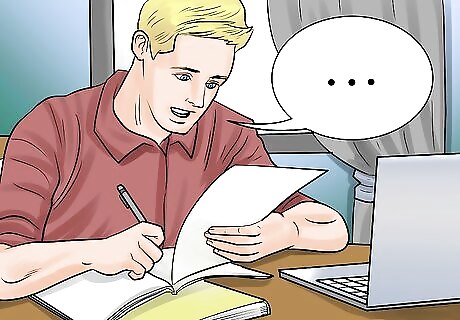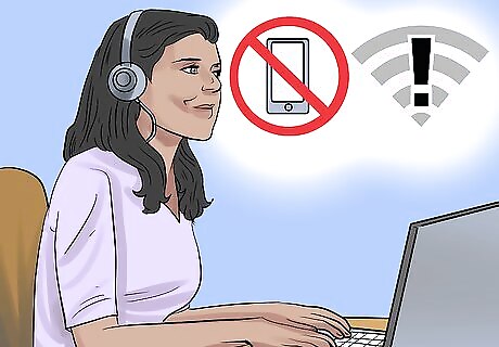 Minimize distractions. To stay focused on your essay, make sure you reduce any distractions around you. Turn off your phone and your Wi-Fi connection, if you don't need the internet for essay research. Close the door to your room or choose a quiet spot in the library to write. Having less distractions will ensure you get the essay done efficiently and effectively. If you are writing the essay at home, let others around you know that you are working and not to be disturbed. If it is noisy around you, put on headphones to block the noise out so you can focus on the essay. Try writing at a time when you're less likely to be disturbed, like in the early morning or at night.