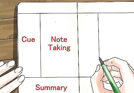 Divide your paper into three sections. Measure about two inches from the bottom of the page and draw a line horizontally. Then measure about 2.5 inches from the left of your paper. Draw a line vertically. Your template should now consist of three separate parts for note taking in class, in an upside-down T shape. The Cornell outline is organized for almost any number of presentation formats to make scanning, locating, and studying notes easier. The outline is also aesthetically pleasing compared to page-after-page of unending, and often needless, note taking. You can find many Cornell templates online if you don't want to divide your own paper up.