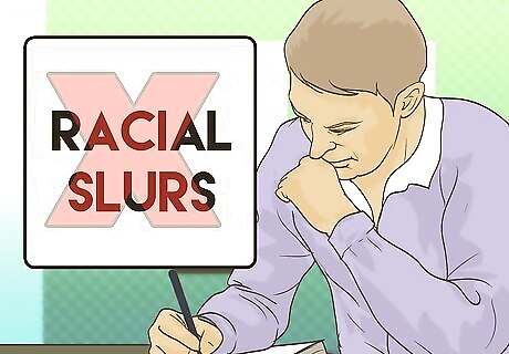 Eliminate derogatory statements and racial slurs. Never write about a specific group of people for the purpose of humor. Racial jokes are distasteful and serve no purpose in your writing. Report the facts about a group of people, not opinions. Doing so may infuriate many people. It may also make you popular with people or groups with whom you may not want to be affiliated or associated. Avoiding these things keeps you credible.