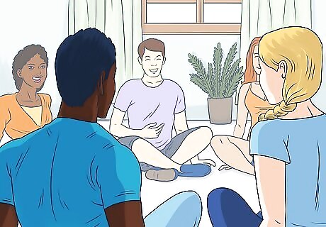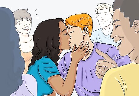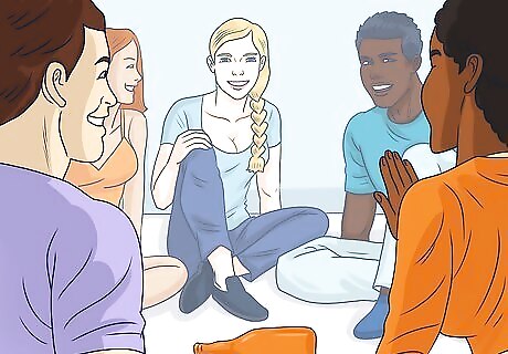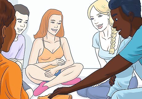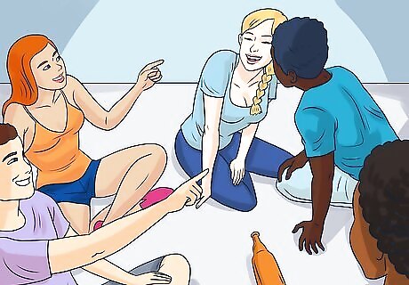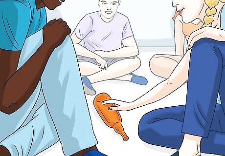 Gather a group of friends. When it comes to playing spin the bottle, the very first thing you'll need is other people (unless you want to play by yourself, which would be a pretty sad sight). To begin, find a group of willing friends—you’ll need at least 3, but the more the merrier! Make sure your friends know what they are getting into before you start playing. Kissing is something that's usually reserved for people who really like each other, so forcing people to kiss who don't want to can be really embarrassing for everyone involved. Don't pressure anyone into playing with you who doesn't want to.