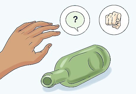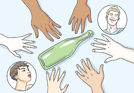 Have one player spin a bottle in the center of the circle. When you're all ready to play, pick one person to start the game. This person must take a bottle (or, really, any similarly spin-able object, like a pen, a glass, a key, etc.) and spin it hard in the middle of the circle of players. After it starts spinning, no one may touch the bottle until it comes to a complete stop. If you're unsure of how to decide who should spin the bottle first, try letting the oldest or youngest player go first, or have one person think of a random number and start with the person who guesses closest to it.
